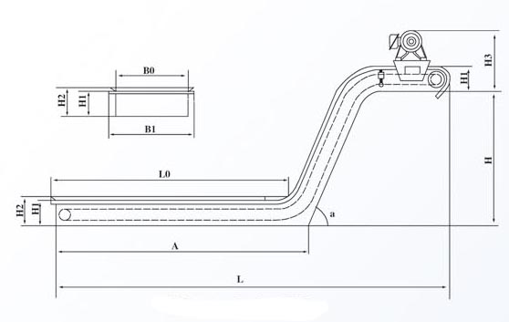 3、寬度B1,根據(jù)排屑機的安裝空間確定。