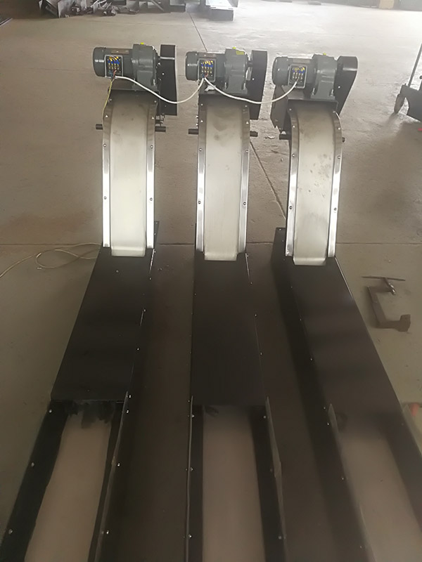 1、磁性排屑機是利用永磁材料所產(chǎn)生的強磁場的磁力,將切屑吸附在排屑機的工作磁板上,